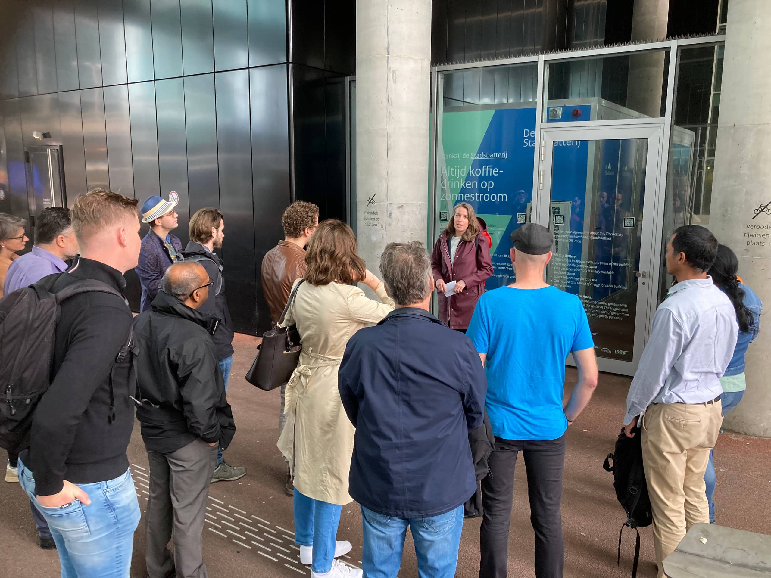 Fay van Zeijl vertelt deelnemers aan de ERDH-tour over de Stadsbatterij